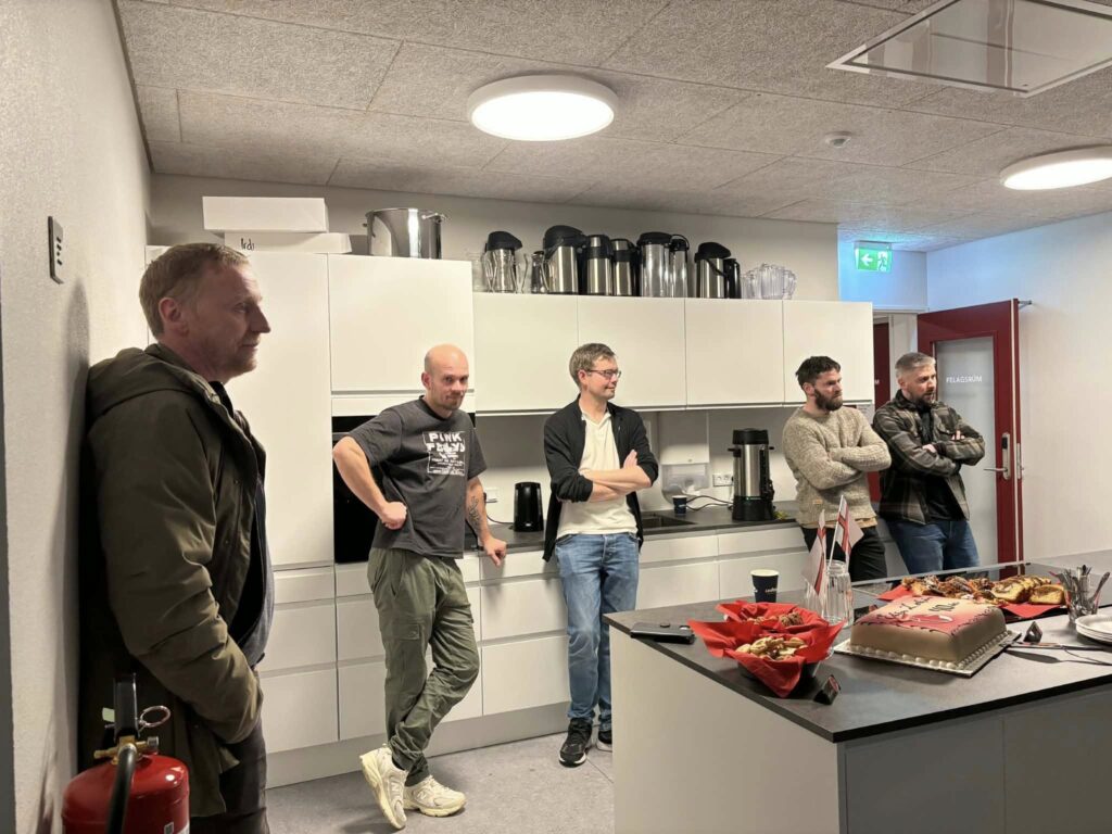 Síðani var farið til lagkøkuna – og tá Elin fyllur, er væl loyvt hjá leikarum at eta lagkøku.